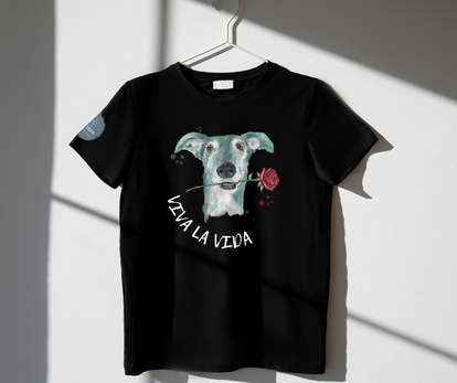 Dit bio katoenen shirt in zwart heeft een unieke tekening met tekst en op de rechtermouw het VLV logo.
